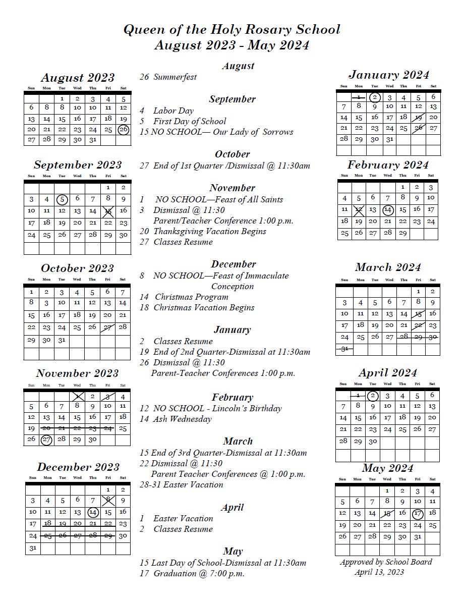 2023 – 2024 Calendar